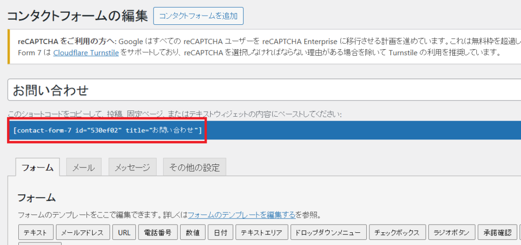 これで問い合わせフォームの設定が一通り完成します。