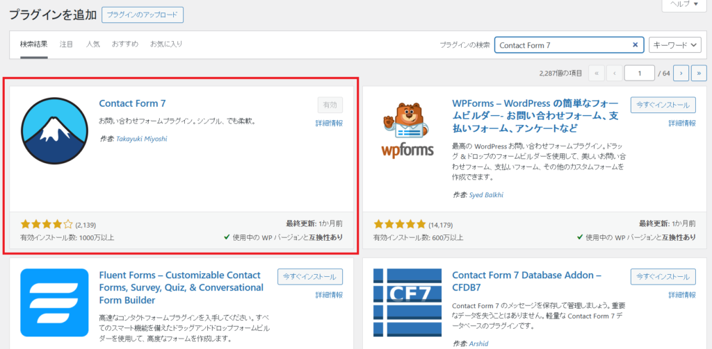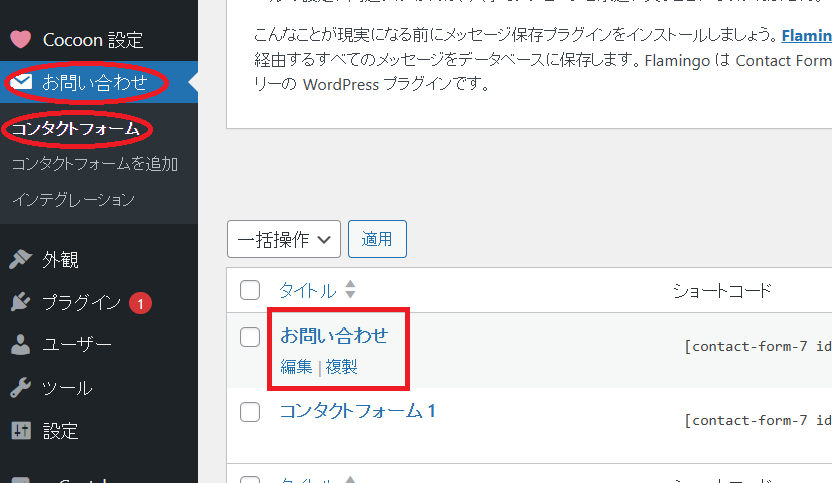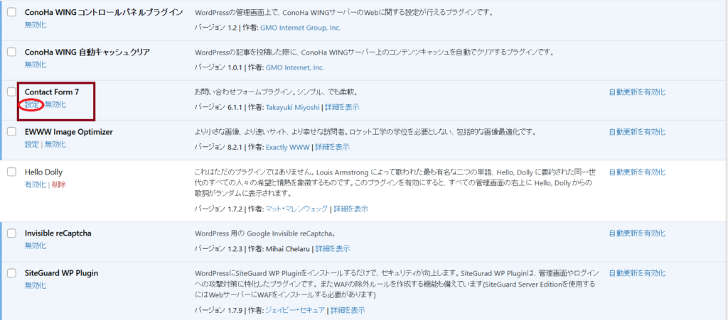 1. プラグイン『Contact Form 7』をインストール・有効化