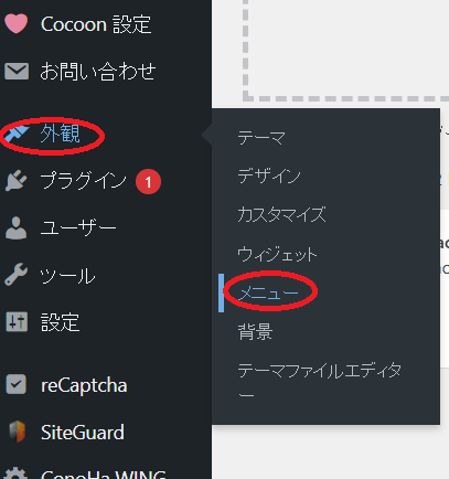 WordPress管理画面(左の一覧)から