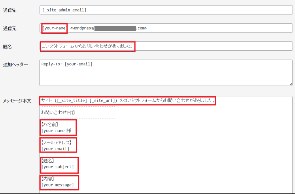 ①『送信元』を[_site_title]→[your-name]に変える