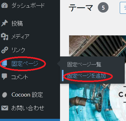 →「固定ページを追加」新規作成が始まります。