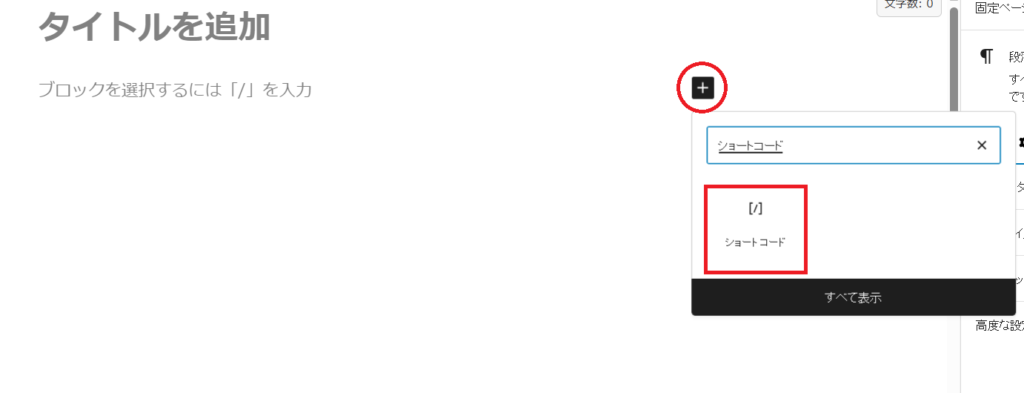 →出てきたショートコードブロックの中に、